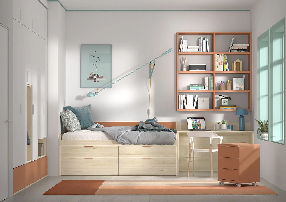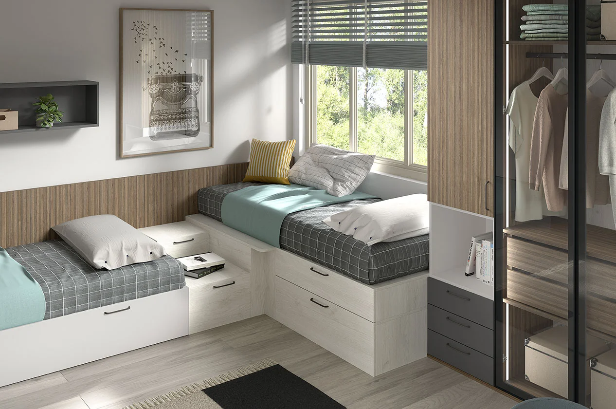 Soluciones inteligentes → camas nido, escritorios y almacenaje.
